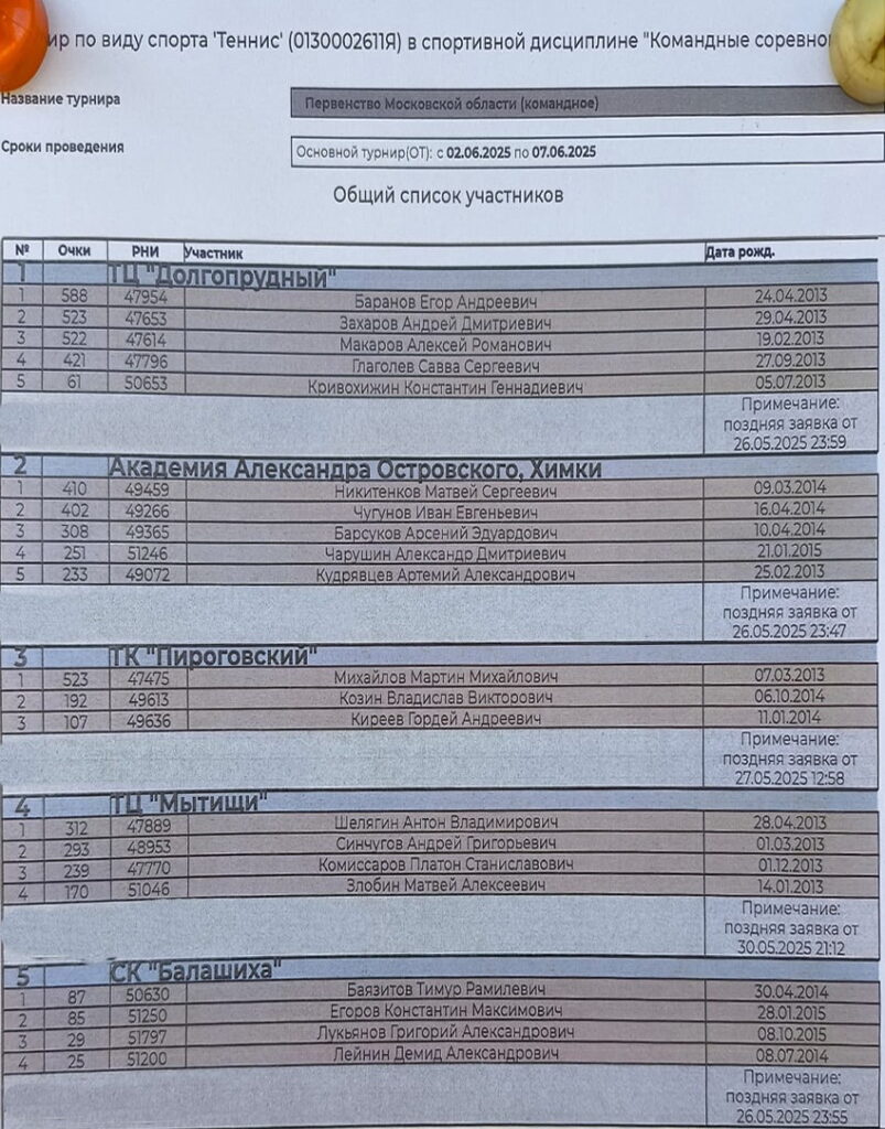 Первая неделя лета собрала на кортах ТК «Пироговский» сильнейшие команды Московской области в возрастной категории до 13 лет. С понедельника по пятницу шли напряжённые поединки командного Первенства Московской области. Довольно редкий формат для теннисных турниров, где преобладают личные первенства и одиночные турниры. Здесь же командный дух, живые эмоции и незабываемые впечатления превратили турнир в настоящий Праздник тенниса. В состав юношеской команды ТЦ «Долгопрудный» вошли Егор Баранов, Андрей Захаров, Алексей Макаров, Савва Глаголев, Константин Кривохижин. Все ребята показали великолепный теннис. В результате — заслуженное первое место (в финале обыграли команду Академии Александра Островского из Химок)!