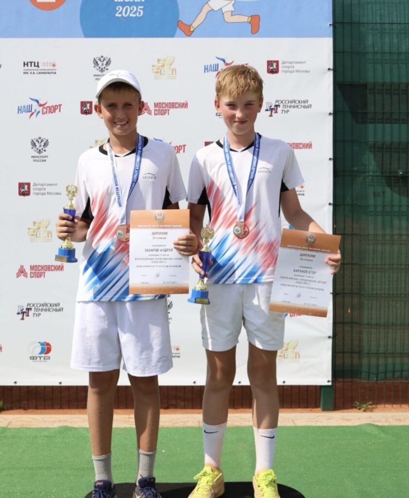 В воскресенье 7 сентября на кортах теннисной школы «Белокаменная» прошёл итоговый турнир серии Открытый летний Кубок по теннису Summer Moscow Open 2025 в возрастной категории до 13 лет. В одиночном турнире победителем стал Константин Кривохижин. Кубок победителю вручал легендарный тренер Борис Львович Собкин.